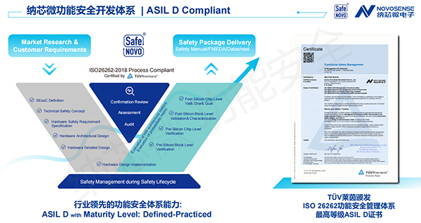 Lynn介绍,纳芯微在功能安全体系建设上分两步稳步推进:早在2021年,公司就通过了TÜV莱茵的功能安全管理体系ASIL D认证,标志着在流程规范、组织管理以及开发体系方面达到ISO26262的要求;2025年,公司进一步通过TÜV莱茵ISO 26262 ASIL D “Defined–Practiced”级别认证,意味着功能安全能力已从管理体系层面延伸到工程实践能力,可在真实工程项目中有效落地。